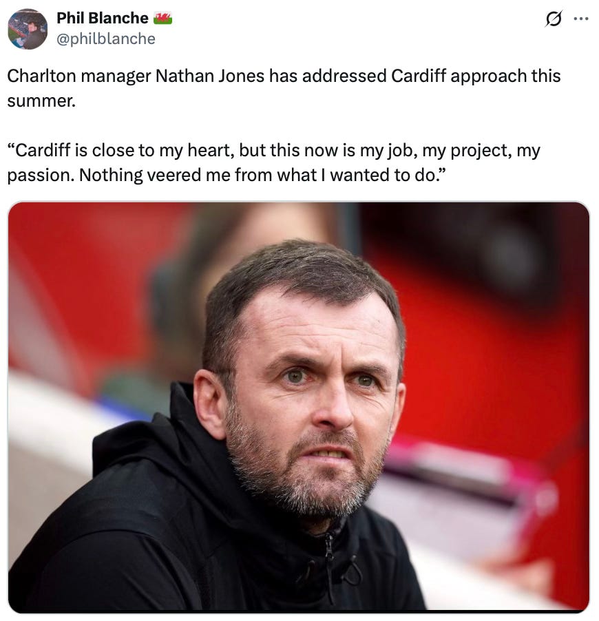 Nathan Jones ble i februar 2024 ansatt som hovedtrener i Charlton Athletic, etter flere år med opp- og nedturer i sin trenerkarriere. Den tidligere venstrebacken fra Wales hadde da vært uten jobb siden han fikk sparken i Southampton etter en kort og turbulent periode i Premier League. Jones har likevel et solid navn på nivåene under, spesielt etter det han fikk til i Luton Town.